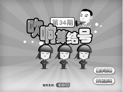 記者發(fā)現(xiàn),目前有數(shù)十萬(wàn)網(wǎng)友參與過(guò)互動(dòng)惡搞《集結(jié)號(hào)》,其惡搞方式就是拿馮小剛開(kāi)涮,游戲稱(chēng)名導(dǎo)馮小剛攜年度大片《集結(jié)號(hào)》再戰(zhàn)內(nèi)地電影市場(chǎng),但當(dāng)今觀眾的欣賞水平越來(lái)越高,要求也越來(lái)越高,導(dǎo)演面臨的壓力很大。究竟《集結(jié)號(hào)》能否吹響,請(qǐng)你助他一臂之力。而游戲規(guī)則就是:點(diǎn)擊鼠標(biāo)左鍵擊斃沖上陣地的群眾演員,同時(shí)注意不要打中摻雜在其中的明星演員。如果讓敵人沖上陣地或是誤殺一定數(shù)量的明星演員游戲即失敗,參與者的任務(wù)就是,請(qǐng)堅(jiān)守陣地直至集結(jié)號(hào)吹響。