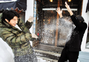 一年一度的圣丹斯電影節(jié)正在如火如荼舉行中,入圍世界劇情片競(jìng)賽單元的《戰(zhàn)·鼓》主創(chuàng),包括導(dǎo)演畢國(guó)智和主演房祖名,23日來到影展的所在地,銀裝素裹的美國(guó)小鎮(zhèn)——帕克城。當(dāng)?shù)厣詈竦姆e雪,讓兩位大男人忍不住打起雪戰(zhàn),最后似乎以房祖名落敗告終。