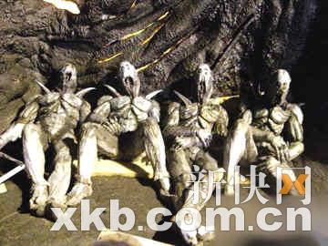 盡管這組劇照中沒能曝光重要角色“短笛大魔王”的造型,但是在擔任劇組特別化妝效果師的好萊塢資深化妝師Edward French 的個人主頁上,卻有一張魔王的“去頭照”;诒C芾碛,這張照片在魔王的頭部打上TOPSECRET(最高機密)的標簽。余下的身體部分,乍一看以為是蝙蝠俠造型,但從手臂的肌理來看,確實與《龍珠》原著的短笛的種族特征相去不遠,除了膚色黝黑與原著的綠色有出入之外,恐怕這就是千真萬確的大魔王本尊了。Edward French 還談到,如此耗時的化妝,長達一個半月以來他重復進行著,所幸詹姆斯·馬斯特斯這位專業(yè)的演員十分和善也很配合。