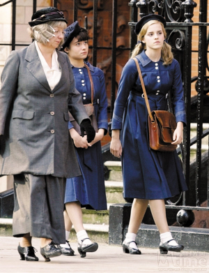 那個曾經(jīng)滿臉稚氣的赫敏在《芭蕾舞鞋》中已經(jīng)長成了大姑娘,個頭比很多同齡人都高,長及肩膀的波浪長發(fā)讓她顯得更為成熟。改變最大的是發(fā)色,愛瑪在《哈利·波特》中頭發(fā)還是栗子色的,但在《芭蕾舞鞋》中變成了金黃色。原來,后者才是她的本來發(fā)色。當(dāng)初拍《哈利·波特》時,因?yàn)榱_琳原著中赫敏的頭發(fā)是栗子色,愛瑪只能忍痛讓發(fā)型師把她的頭發(fā)全部染了。新片中,愛瑪?shù)膽蚍⒉唤k爛,嚴(yán)謹(jǐn)?shù)挠⒏裉m女學(xué)生制服雖然沒有女巫披風(fēng)那么“拉風(fēng)”,但卻同樣襯得她秀美而純情。