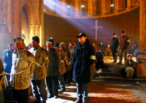 陸川:屠殺部分在片中會有長達20多分鐘,這部電影中群眾演員一次性動用最多的有2000多人,特技合成后會達到2萬多人,主要都是表現屠殺和戰(zhàn)爭場面的。