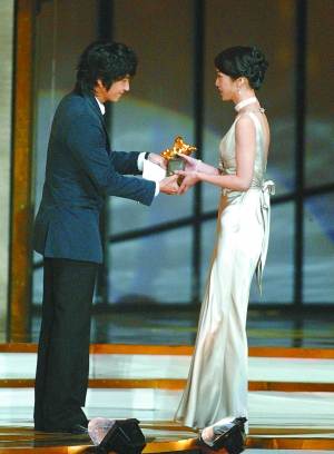 去年金馬獎上,李準基作為嘉賓為湯唯頒新人獎,這應該算是兩人的首次“合作”。圖/CFP