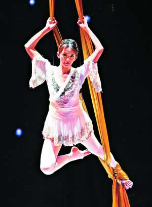 前晚她身負(fù)金馬獎(jiǎng)開場重任,一出場唯美的火紅古裝令人驚艷。這是她首度在公開場合的獨(dú)唱表演,但娃娃音唱腔其實(shí)是事前配唱的成品,林志玲坦言壓力很大,加上是首次以電影人身分出席盛會(huì),“希望大家仍會(huì)給我加油打氣!薄缎膽(zhàn)》唱畢,她褪去紅衣,幻化成白天鵝舞出飛天秀,高難度技藝讓全場觀眾贊嘆,據(jù)說她為此苦練8天、每天8小時(shí),加強(qiáng)肌肉耐力、克服恐懼。主辦單位特別為曾墜馬的她保了5000萬臺(tái)幣意外險(xiǎn),當(dāng)晚她共“飛”了3次,前兩次沒鋼絲輔助,但這 “特技”與蔡依林的《特務(wù)J》“空中無重力彩帶舞”有些雷同。最后她再次搖身一變女戰(zhàn)士,拿著長槍和舞者對(duì)打,不過這段表演,略嫌花拳繡腿。