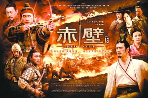 昨日,為紀(jì)念“赤壁大戰(zhàn)1800年”,由中共赤壁市委、市政府與中國電影集團(tuán)共同舉辦的“電影《赤壁》(下)海報(bào)揭幕儀式”在三國赤壁古戰(zhàn)場遺址舉行。導(dǎo)演吳宇森、演員佟大為、臧金生與到場的嘉賓一起緩緩拉起“船帆”,《赤壁》(下)海報(bào)的廬山真面目終于展現(xiàn)在觀眾面前:海報(bào)以火燒赤壁為背景,人物分左右兩組站立。最前方趙云手握利劍,雄姿英發(fā),相對應(yīng)的,諸葛孔明在海報(bào)的右下方占據(jù)主要位置,而據(jù)悉,此款海報(bào)有意突出由林志玲扮演的小喬的位置,在下部中,小喬有更多的戲份,包括和曹操的糾葛以及和周瑜的感情戲。