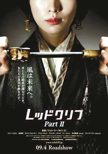 《赤壁》(下)的日本海報(bào)是小喬拔劍自殺。