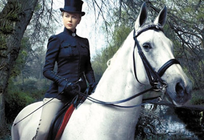 在澳洲趕牛,靠的是騎馬揚(yáng)鞭。在這方面,看似嬌滴滴的妮可其實(shí)一點(diǎn)都不像她扮演的英國貴婦莎拉那樣不在行,她的騎術(shù)甚至相當(dāng)不錯(cuò)。在片中,她脫下了貴婦裝,穿上了騎馬裝———襯衫、馬褲和長靴雖然硬朗,卻奇異地讓妮可的身材更顯曲線。上千頭牛一起在草原上奔跑,這是《澳洲亂世情》中最令人震撼的場景之一,而妮可騎在馬上的嬌小身影就混雜其中。她大聲吆喝,策馬揚(yáng)鞭,混雜著汗水和塵土的臉蛋泛著紅光,成為國外觀眾心目中妮可最性感的造型。