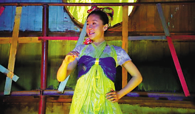 苗圃在片中飾演的是一群大老爺們中唯一的女性杏胡,為了幫孟夷純湊錢,幾個(gè)破爛王在自家大院舉辦了一臺(tái)“慈善晚會(huì)”——眾人的禮服全部由各式塑料袋拼接而成,杏胡更是放聲高唱《山丹丹開花紅艷艷》,十足芙蓉姐姐的“驚艷”模樣。