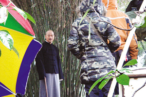 中影集團(tuán)新中國成立60周年獻(xiàn)禮片《建國大業(yè)》因?yàn)檎?qǐng)到了眾多大腕客串,吸引了媒體的高度關(guān)注。張國立(飾蔣介石)、陳坤(飾蔣經(jīng)國)、馮小剛(飾杜月笙)、鄔君梅(飾宋美齡)等人的戲份均在南京。劇組從22日起轉(zhuǎn)場南京后,一直“封閉式”拍攝,與媒體玩“躲貓貓”。不過,“樹大招風(fēng)”,劇組還是泄露了行蹤,記者了解到,由黃建新帶領(lǐng)的劇組這兩天在美齡宮、南京大學(xué)取景,昨日又結(jié)束了在東大的拍攝,今日起,將轉(zhuǎn)場中山陵,拍攝重要戲份。