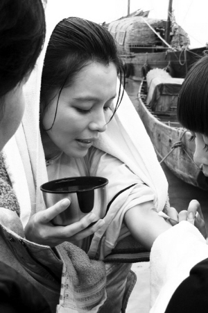 徐若瑄介紹,她扮演的黃蘇英是個(gè)美麗善良,而又堅(jiān)韌不拔的漁家女,看到孩子的同學(xué)不慎掉入水中,她當(dāng)即跳海救人。拍攝當(dāng)天,海邊的天氣十分寒冷,天空下著雨,海風(fēng)很大,導(dǎo)演為她的身體狀況擔(dān)心不已!拔視(huì)游泳,但因?yàn)橐托⊙輪T配合,所以要在海水中一遍遍試戲,很耗體力,后來我的腿都在抽筋了!北M管劇組提前準(zhǔn)備了充足的保暖和安全措施,上岸后的徐若王宣仍凍得瑟瑟發(fā)抖,幾盡虛脫狀態(tài),長時(shí)間無法緩解過來。○黃笑宇