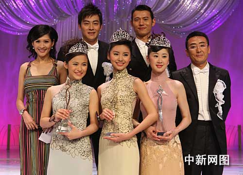 "中華小姐"三甲與司儀合影。
