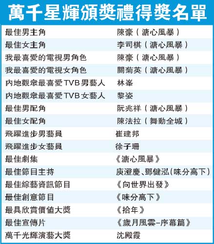 無線《萬千星輝頒獎禮2007》得獎名單(3)