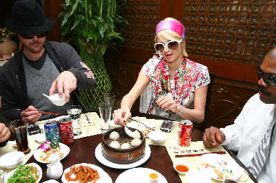 希爾頓一行人在人均消費最低150元的包房里,每人點了180元的套餐享用。用餐期間,希爾頓用筷子不穩(wěn)當?shù)貖A起幾只小籠包后,即開始用手抓著吃。隨后顧及形象,她又使用起叉子。飯吃飽后,希爾頓不但放攝影記者進包房,讓自己接受一番鎂光燈的掃射,還在該店的大紅本子上留言:“Ilovethisrestaurant!Amazingfood!”(我喜歡這家餐廳!食物很棒!)
