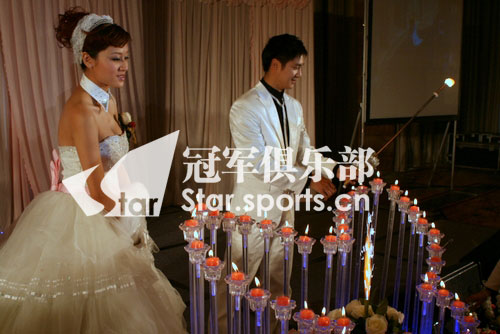 從今天上午11點(diǎn),備受關(guān)注的田亮的葉一茜婚禮的在西安市高新區(qū)香格里拉大酒店舉行,包括田亮和葉一茜的親友同事,陜西省體育局局長(zhǎng)李明華、田亮的教練張挺在內(nèi)的一眾嘉賓出席了婚宴。圖為田亮和葉一茜共同點(diǎn)燃愛(ài)的火種。(完)(記者 張銳)