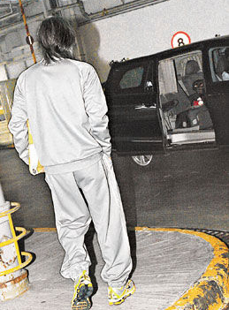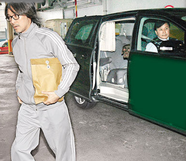 星爺?shù)竭_(dá)拍攝現(xiàn)場后先行下車,但愛犬Chocolate卻堅(jiān)持坐在車廂內(nèi)。