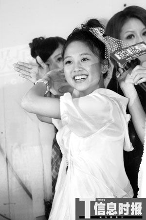 裝可愛是這群小女生的拿手本領(lǐng),應(yīng)主持人要求后,MeiMei率先在臉頰邊擺出OK的手勢,再配合微嘟的嘴,十分可愛。走氣質(zhì)美女路線的Apple則使出“一陽指”功夫,緊貼嘴唇做出“噓”的動作。大牙左右手并上,動作幅度大,謀殺了不少菲林。搞怪的鬼鬼擺出像龜波氣功的姿勢還笑說:“這是翻蓋手機!倍蠓降乃粏柶鹑藲飧呤欠褚驗楹秃谌恕巴印(其實只是房東跟房客的關(guān)系)時,就立刻流露出羞澀的神態(tài)一個勁揮手:“哎呀,不要這么說,他是好哥哥,很照顧我而已。”