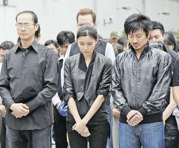 中新網5月20日電 香港無線全體演職員昨天中午于將軍澳電視城發(fā)起默哀活動,逾百位藝員及數(shù)百位職員合共500多人,齊集電視城停車場,在無線總經理陳志云帶領下,于14時28分為四川汶川大地震遇難的同胞默哀3分鐘。默哀開始不久即下起毛毛細雨,多位藝人包括關菊英、苗僑偉、蒙嘉慧、陳法拉等于默哀時不禁落淚,場面莊嚴而凄涼。