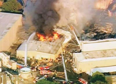 起火點(diǎn)是影城內(nèi)一個攝影棚,事發(fā)當(dāng)時可能進(jìn)行著拍攝工作,而且發(fā)生過至少一次爆炸。濃濃黑煙竄上數(shù)十米的高空形成蘑菇云,消防局一度派出直升機(jī)到現(xiàn)場上空灑水滅火。