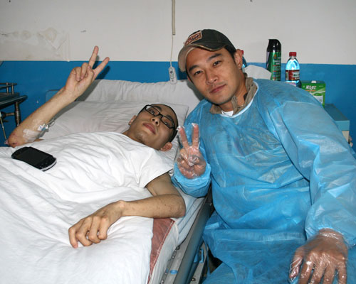失去雙腿的這名男青年,名叫劉暢,是一個(gè)剛剛畢業(yè)的大學(xué)生。發(fā)生地震的那一瞬間,他用自己的身體護(hù)住了一位女同事。直到救援人員把他們倆救出來(lái)的時(shí)候,發(fā)現(xiàn)劉暢的雙腿已經(jīng)腐爛不成樣子了,而他的同事只受了一點(diǎn)輕傷。醫(yī)生說(shuō):“劉暢的生存意志很強(qiáng),能活下來(lái)真的是一個(gè)奇跡,雖然他的面容依然清瘦,但是在被他救出來(lái)的女同事的悉心照顧下,身體康復(fù)很快!碑(dāng)媒體采訪劉暢是什么讓他有這么堅(jiān)強(qiáng)活下來(lái)的意志的的時(shí)候,他說(shuō):“我想看到同事平安!”一句簡(jiǎn)單的話(huà),卻又多么震撼人心。
