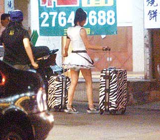 嬌小的徐若瑄兩手拖著斑馬紋行李箱,準(zhǔn)備回家。