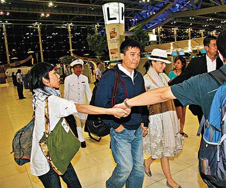中新網(wǎng)7月18日電 梁朝偉和劉嘉玲下周一(21日)將在不丹舉行婚禮,前日(16日)他們帶著十箱行李飛赴不丹。一對準(zhǔn)新人前晚抵達(dá)曼谷時均滿面春風(fēng),并在機(jī)場免稅店狂買約30瓶香檳及80條香煙?磥矶说幕槎Y已準(zhǔn)備煙酒齊飛,向來喜歡小酌的新娘子必定不醉無歸。