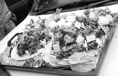 昨天,晨報記者和數家香港媒體同行在通往UmaParo酒店的道路上苦苦守候了一天,想盡了一切辦法試圖獲得婚禮核心區(qū)的消息。最后,梁朝偉、劉嘉玲也被記者們的誠意所打動,特地準備了蛋糕給記者帶下山來。不過,面對蛋糕和可樂,饑餓的記者們的第一選擇卻不是分而食之,而是迅速掏出相機一陣狂拍。