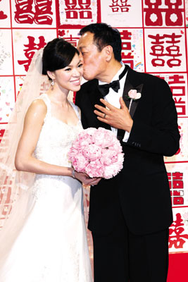 7月26日晚,58歲的臺(tái)灣鴻海董事長(zhǎng)郭臺(tái)銘在300位嘉賓祝福中,與33歲的曾馨瑩(狗狗)結(jié)為連理。面對(duì)媒體詢問(wèn)新婚的感覺(jué),身家達(dá)1733.76億新臺(tái)幣的郭臺(tái)銘說(shuō):“很害羞!倍(dāng)嘉賓們談到“中老年人結(jié)婚高潮都在后面”時(shí),郭臺(tái)銘當(dāng)場(chǎng)做了30個(gè)俯臥撐,證明身強(qiáng)體壯,贏得了滿場(chǎng)掌聲。