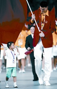 運動員入場,頭上有個疤痕的小男孩牽著姚明的手步入,開心地揮手。他是林浩,他的父親林大坤在接受晨報記者采訪時透露,開幕式結(jié)束后,林浩用“很自卑”形容自己和姚明走在一起的感受,原話是:“我很自卑。他是全場最高的人,我是全場最矮的人。”