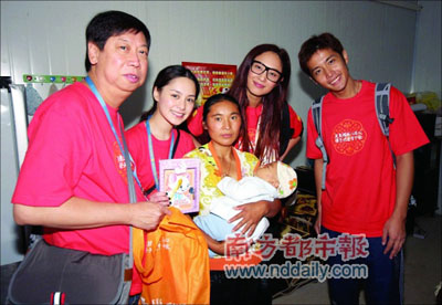 霍汶希:我記得地震的第一天她已經(jīng)打電話給我,說她想去,但是因?yàn)楫?dāng)時(shí)那邊太危險(xiǎn),義工機(jī)構(gòu)都不同意她去。這次她去是我們跟無國界的義工團(tuán)體聯(lián)系的,知道他們中秋節(jié)會(huì)過去陪那里的人過中秋節(jié),所以就安排阿嬌和一個(gè)女助手跟義工組織一起去了。