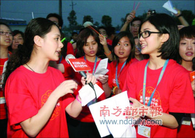 吳雨:我比她晚一個(gè)星期到,聽義工講她很努力,每天一早就出門,一直做到晚上。我們在那邊還做了一臺(tái)晚會(huì),當(dāng)?shù)貤l件有限,沒有布景,沒有音響,沒有燈光,我們就掛了兩個(gè)燈籠,很原始,但是效果很好,居民很開心,小孩子跟我們一起唱歌,唱他們很熟的歌,好像《明天會(huì)更好》,我不準(zhǔn)的歌手唱自己的歌。最后,我們都哭了。