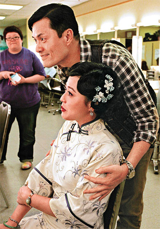 呂良偉在化妝間巧遇舊愛(ài)周海媚,突然親她面頰,周海媚露出尷尬神色。