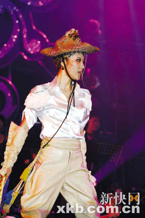 閃亮牛仔裝造型,以絲感覺面料為中性造型增添女人味。閃亮牛仔帽,復(fù)古袖子,飄逸馬褲,流蘇腰帶以及褶皺長(zhǎng)手套,都是這個(gè)造型值得細(xì)細(xì)品味的潮流細(xì)節(jié)。