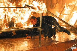 從《皇家賭場》開始,邦德再次回到寫實(shí)風(fēng)格,克雷格回憶說《量子危機(jī)》里他跑到疲于奔命。影片的時(shí)長是所有邦德片中最短的,但動作戲卻兩倍于《皇家賭場》。四場打斗戲不容錯(cuò)過,意大利的追逐、奧地利大眼睛劇院的群毆、巴拿馬夜宴的混戰(zhàn)及最后智利沙漠的終極PK。意大利追逐戲是現(xiàn)下非常流行的“跑酷”(Parkour)風(fēng)格,需要克雷格在建筑物間靈敏穿梭,拍攝前兩個(gè)月的魔鬼訓(xùn)練讓他身心俱疲。而克雷格覺得最困難的是一場船上打斗戲,因?yàn)榇頁u晃,令他覺得如同坐過山車,拍得膽戰(zhàn)心驚,那場戲花了兩個(gè)星期才拍成。