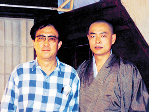 拍攝《弘一法師》時與謝晉合影
