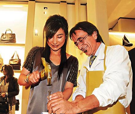 ·郭晶晶身穿絲綢紅裙出席活動 現(xiàn)場學釘鞋(圖)