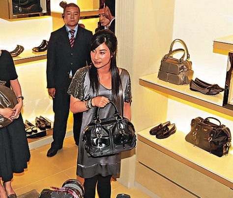 ·郭晶晶酒紅絲綢裙裝亮相 多名黑衣保鏢簇?fù)?圖)