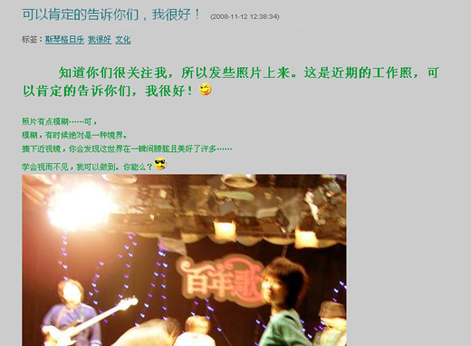 斯琴格日樂在博客中寫道:“知道你們很關(guān)注我,所以發(fā)些照片上來……可以肯定地告訴你們,我很好!”新民網(wǎng)記者在其博客中看到,斯琴格日樂在博客照片的描述中稱,自己可以做到視而不見。