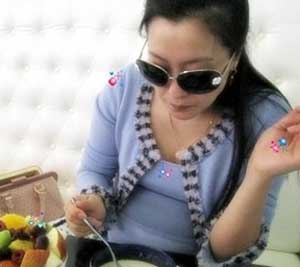金喜善用餐也戴墨鏡