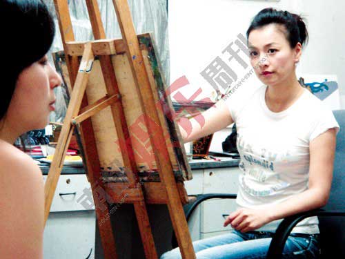 很快張庭就成為上師大美院的正式研究生,她那一屆只有她一個學(xué)生,專業(yè)是裝飾設(shè)計,不過素描油畫是必修課。她常常一個人在畫室里畫人體模特,無人打擾,司機接送,滿身名牌,真的是這個學(xué)校里最高端的學(xué)生了。張庭每周三四天會定時練畫,8個小時不間斷,“表演是一種藝術(shù),它兼具理性和感性,我覺得美術(shù)跟表演是相通的!