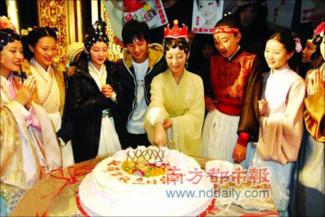在劇組帶妝切生日蛋糕,別有一番情趣!