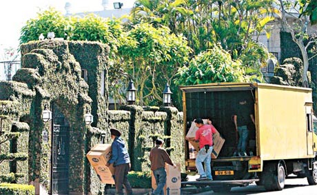 工人將在羅康瑞大宅搬走的幾箱物件,運(yùn)回霍家位于沙宣道的大宅。