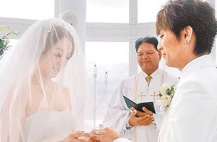 教堂內(nèi)氣氛歡樂、歌舞升平,外頭雨勢卻下不停,記者目擊教堂找來外籍牧師,才講了幾句,新人鼻頭已酸,搭配外頭狂風(fēng)暴雨,老天爺跟新郎、新娘一起掉眼淚,約莫1小時(shí)后禮成奏樂,天空頓時(shí)放晴,不知是好兆頭,還是烏云罩頂。