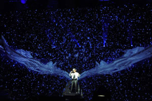 華仔昨晚除了載歌載舞,間中還穿插魔術(shù)秀、音樂劇等,其中音樂劇環(huán)節(jié),他就找來2位辣妹dancers共舞,左擁右抱,又貼身熱舞,又緊緊抱在一起;魔術(shù)秀環(huán)節(jié),還認(rèn)女助手為“女朋友”,羨煞現(xiàn)場所有女歌迷!