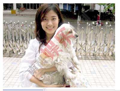 地磚:抱著寵物狗,張茆很開(kāi)心。