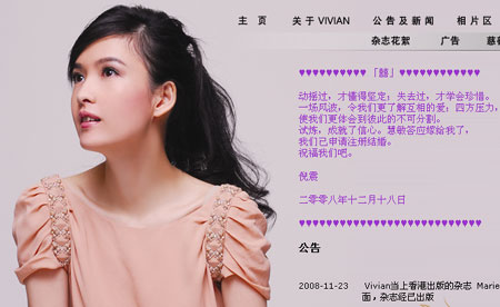 周慧敏個(gè)人官網(wǎng)證實(shí)婚訊。