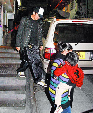 張柏芝(中)抱兒子有些吃力,謝霆鋒卻沒幫忙。