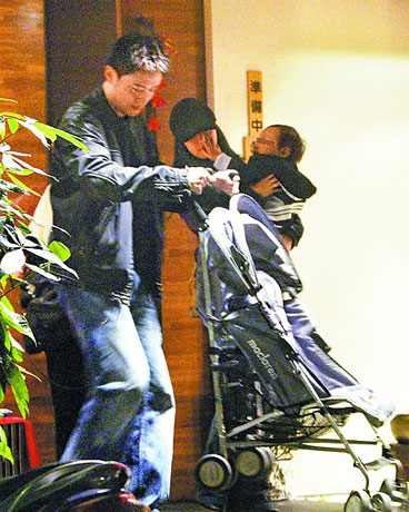 離開餐廳時(shí),徐懷鈺(右)被懷中小孩呼巴掌,仍是一臉慈愛(ài),相親對(duì)象Evan在旁推著娃娃車。