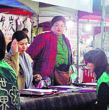 此攤一次收費(fèi)220元,用的是易經(jīng)加西方塔羅牌合璧的“先天塔羅”,她望著桌上擺的水晶球“法器”發(fā)楞,卻遲遲不敢把心中所求何事全盤托出,得知要填個(gè)人資料后,她露出驚訝表情,婉拒離去,記者上前詢問(wèn),店家不愿透露,僅低調(diào)說(shuō):“這是人家的私事,我們也不方便說(shuō)。”