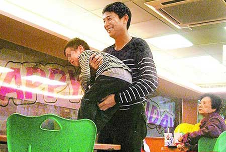 陳威陶(中)抱起兒子(左)。