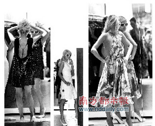 "豪門女"希爾頓姐妹穿花裙露爆乳瘋狂掃貨(組圖)(2)
