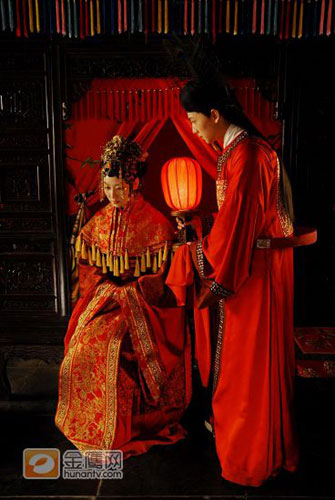 2009年元旦,新版電視劇《紅樓夢》攝制組照常緊鑼密鼓地忙碌著,而這一天拍攝的戲份正是寶玉大婚。在北京廠的攝影棚內(nèi),寶玉房張燈結(jié)彩,一派喜慶氣氛。高懸大紅彩帳的堂前掛著三幅婚聯(lián):“彩筆喜題紅葉句 華堂欣詠采萍章”、“綠窗待月春調(diào)瑟 紅袖添香夜讀書”、“吐鳳雄才成博議 畫眉彩筆點新詩”。而當(dāng)天的婚俗禮儀據(jù)說也是講究多多。寶玉寶釵拜堂異與旁人的三拜,而是四拜:一拜天地諸神,二拜賈母,三拜賈政王夫人,四為夫妻對拜……當(dāng)天參演的主要角色有王夫人(歸亞蕾)、薛姨媽(龔麗君)、尤氏(賈妮)、王熙鳳(姚笛)、賈政(許還山)、賈赦(李健)、賈珍(姜彤)、成年寶玉(楊洋)、成年寶釵(白冰)、成年惜春(徐行)、鴛鴦(蔡飛雨)、襲人(李艷)、鶯兒(方安娜)、平兒(程媛媛)、彩云(呂途)、雪雁(宣璐)等近30位演員,個個盛裝華服,喜氣洋洋。戲里戲外的喜慶氣氛聯(lián)成一片。李少紅導(dǎo)演笑稱“這個紅火的場面也算是新版《紅樓夢》跨入09年的一個開門紅吧!